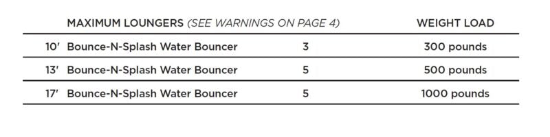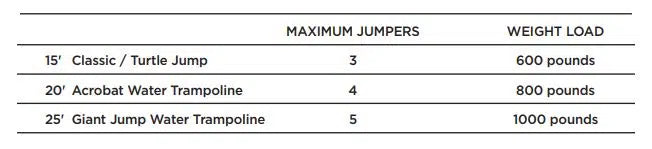 Water Trampoline & Water Bouncer Maximum Capacity
