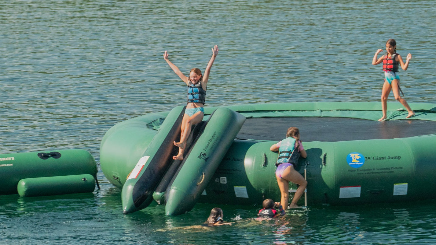 Aqua Sports Technology designed and built the Island Hopper 25ft “Giant Jump” water trampoline using the highest quality materials and features. This ensures greater product longevity and user safety, the choice of hundreds of camps and resorts worldwide.