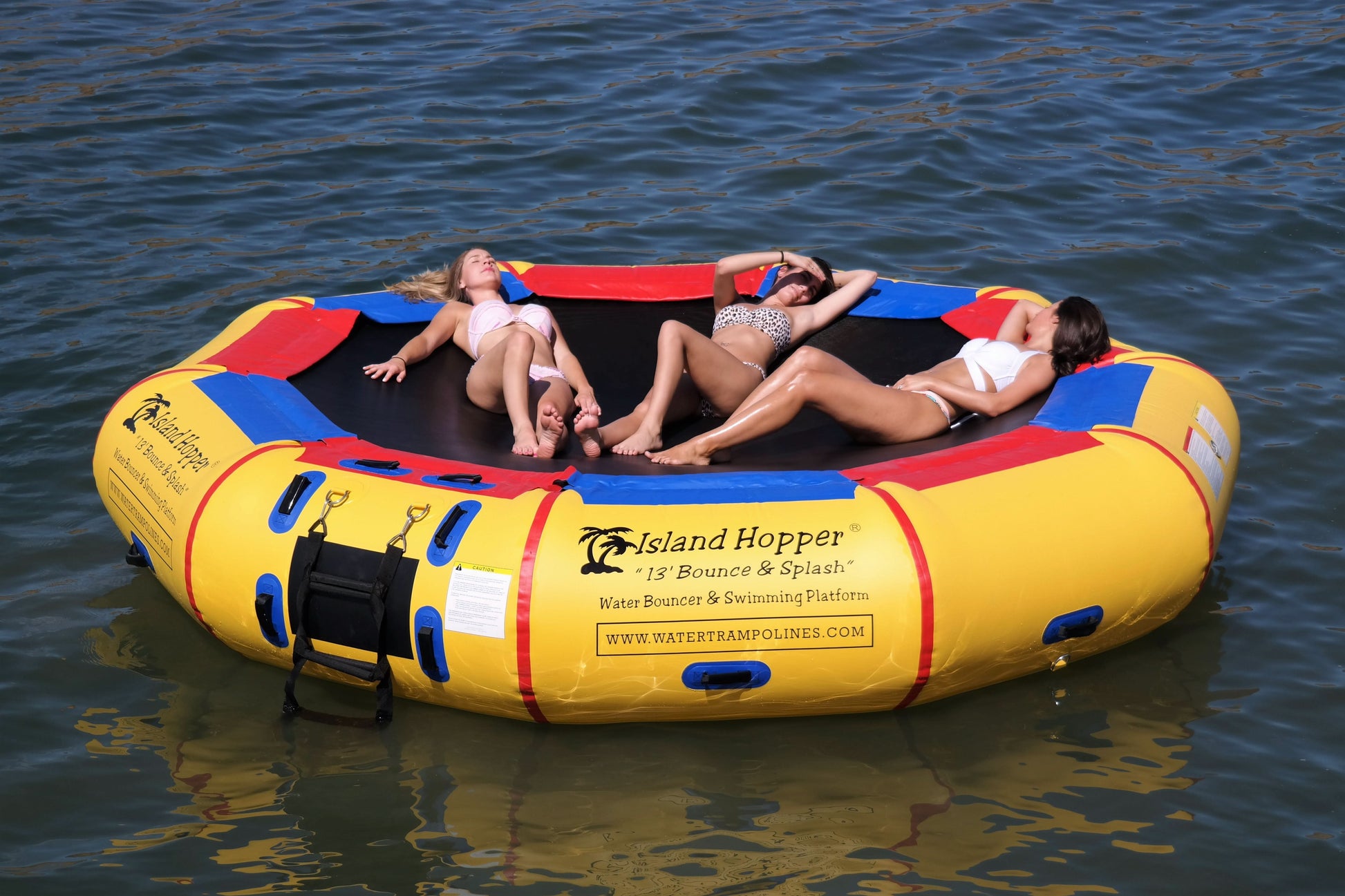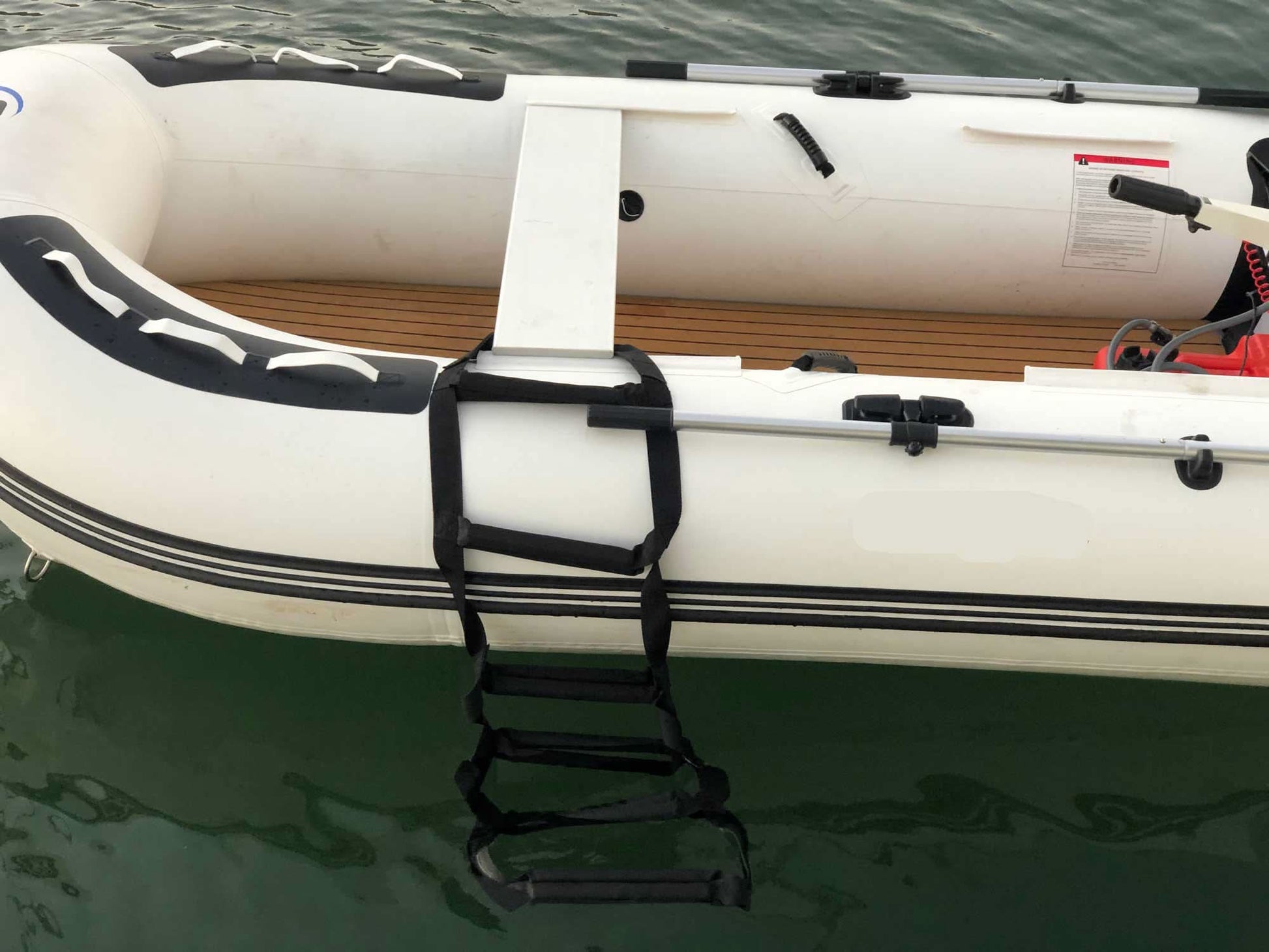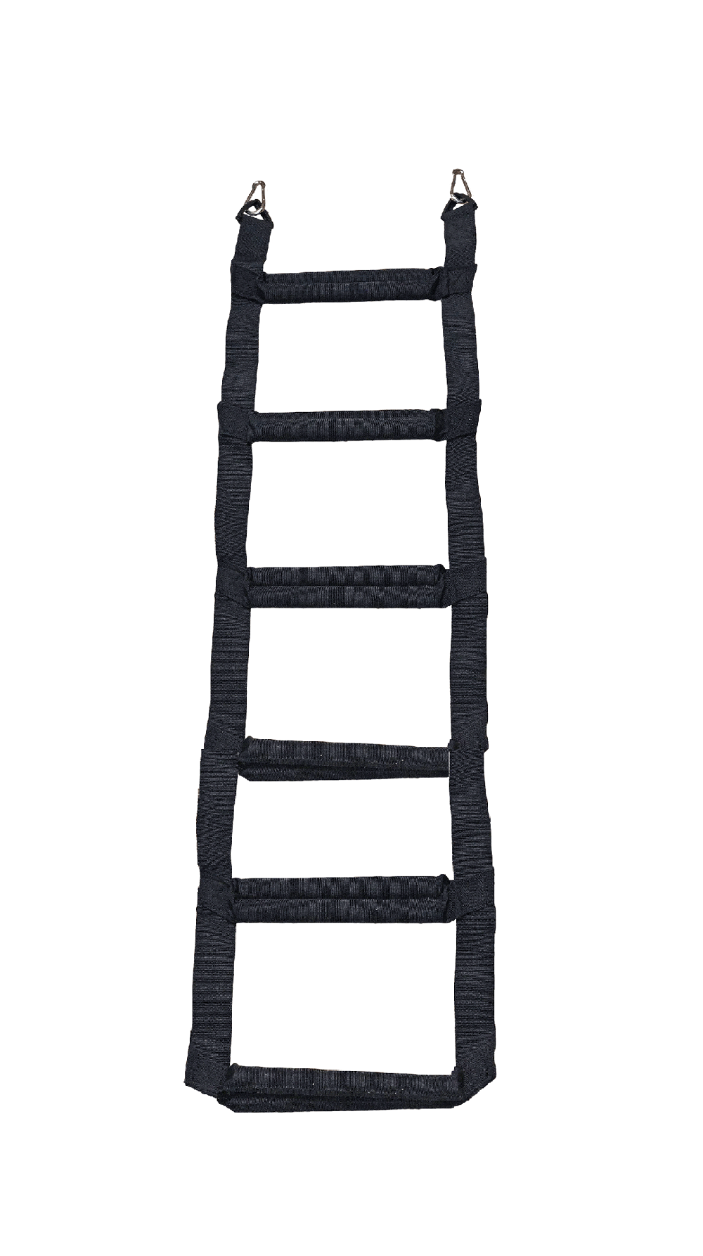 The soft rope ladder easily connects to the 2 d-rings on the water platforms and water bouncers for easy boarding. You can attach the rope ladder to your Sport Boat and throw it over the side of the tube to help climb back up. Attach under the bench seat or to front handles. Rope ladder floats. One size - 6 steps.